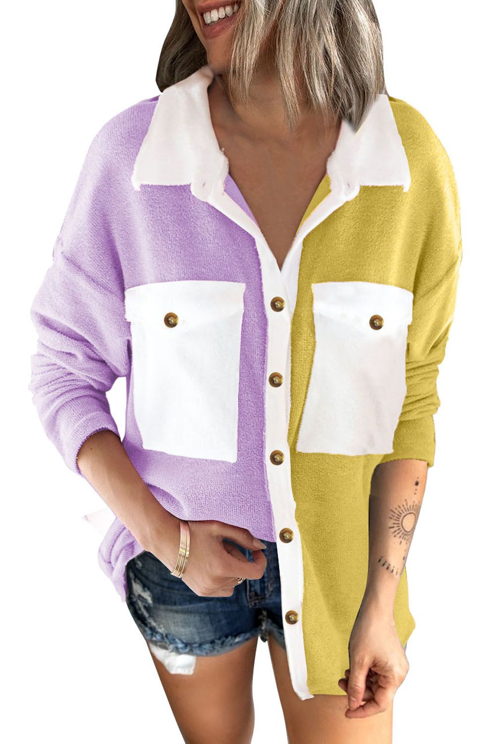 Colorblock design makes the shirt chicer and more eye-catching