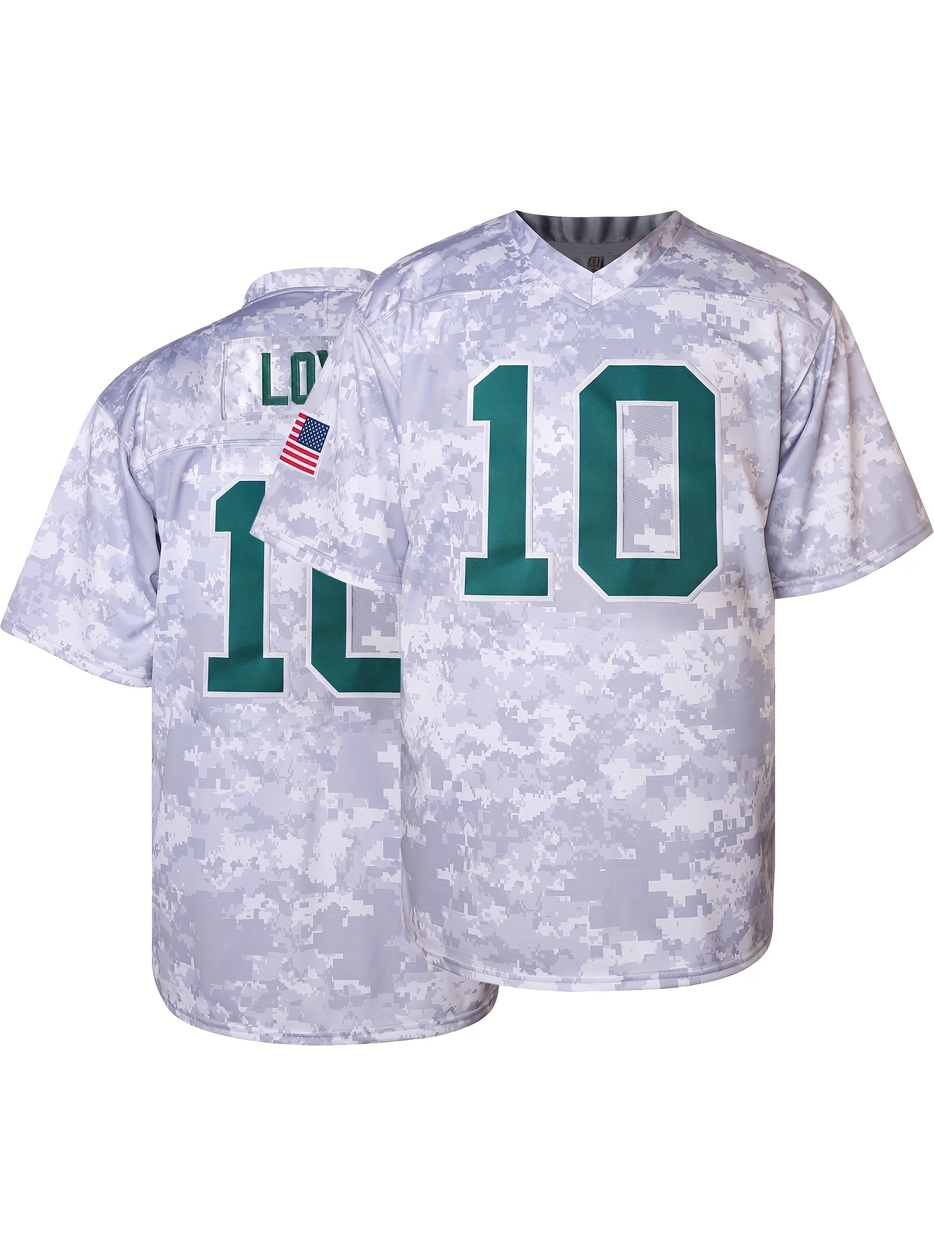 Men's #10 Camouflage American Football Jersey - V-Neck,, Loose Fit for Spring, Summer, Fall Sports & Casual Wear, Sizes S-XXXL