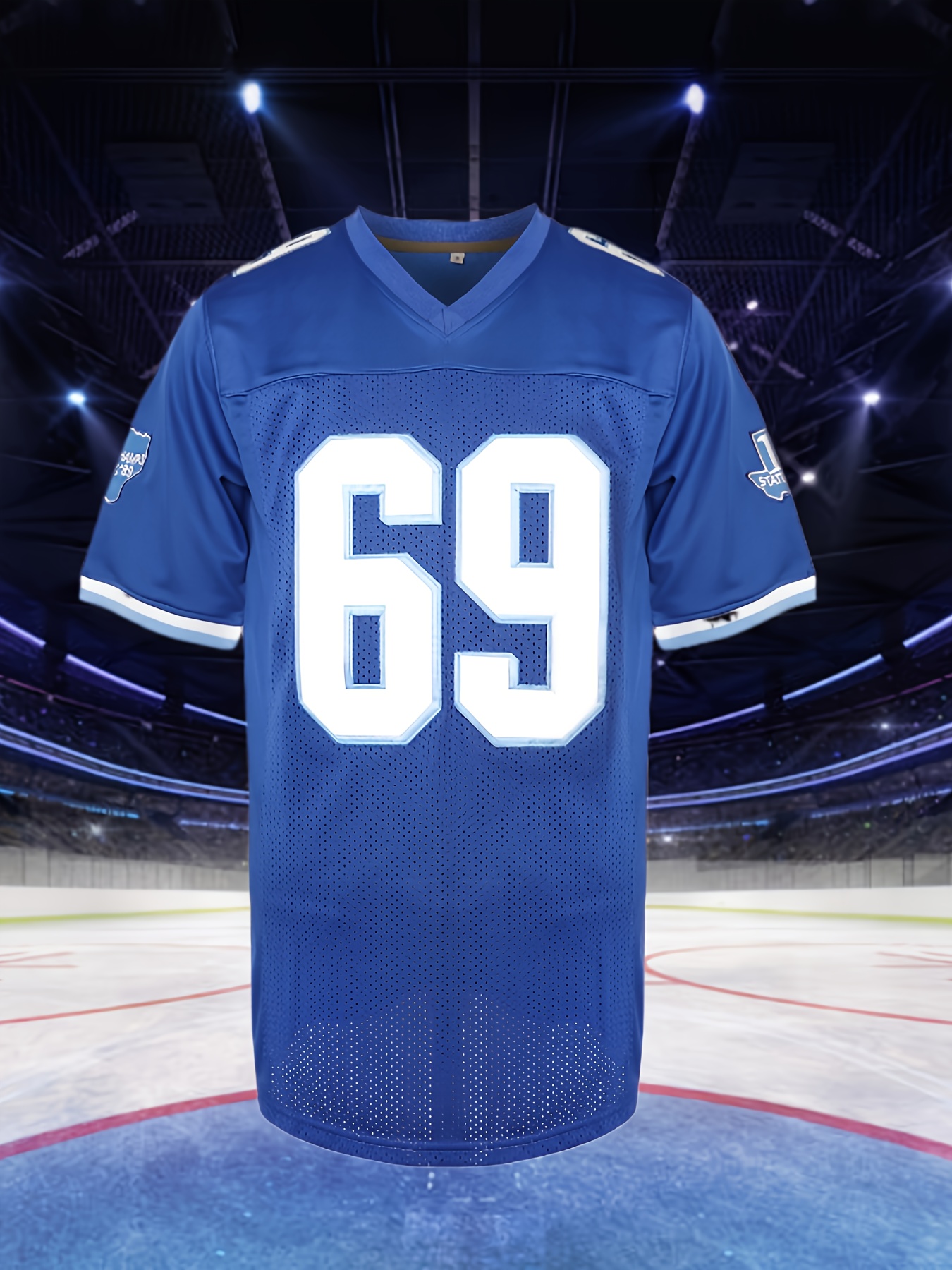 Men's #69 Embroidered Blue Football Jersey - Breathable V-Neck Sports Top with "MY Bob" Design, Sizes S to XXXL, Perfect for Casual, Outdoor, Hiking, and Team Sports, Sports Casual Wear | Relaxed Fit Jersey | Breathable Polyester