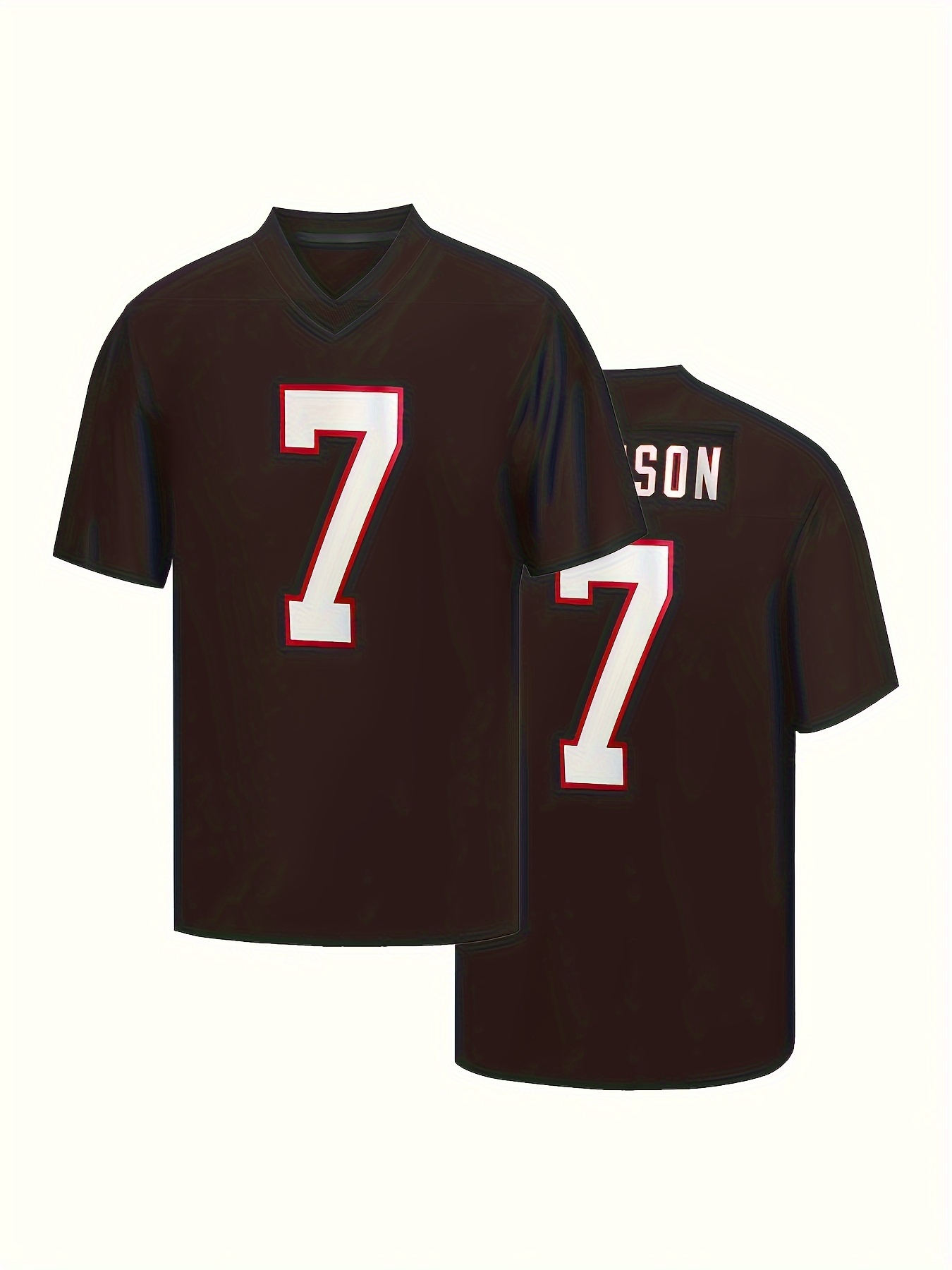 Men's Black #7 Embroidered Rugby Shirt - Breathable 100% Polyester V-Neck Jersey, Loose Fit Athletic Top for Running, Training, Hiking & Outdoor Activities - All-Season Machine Washable Sportswear for Adults & Teens