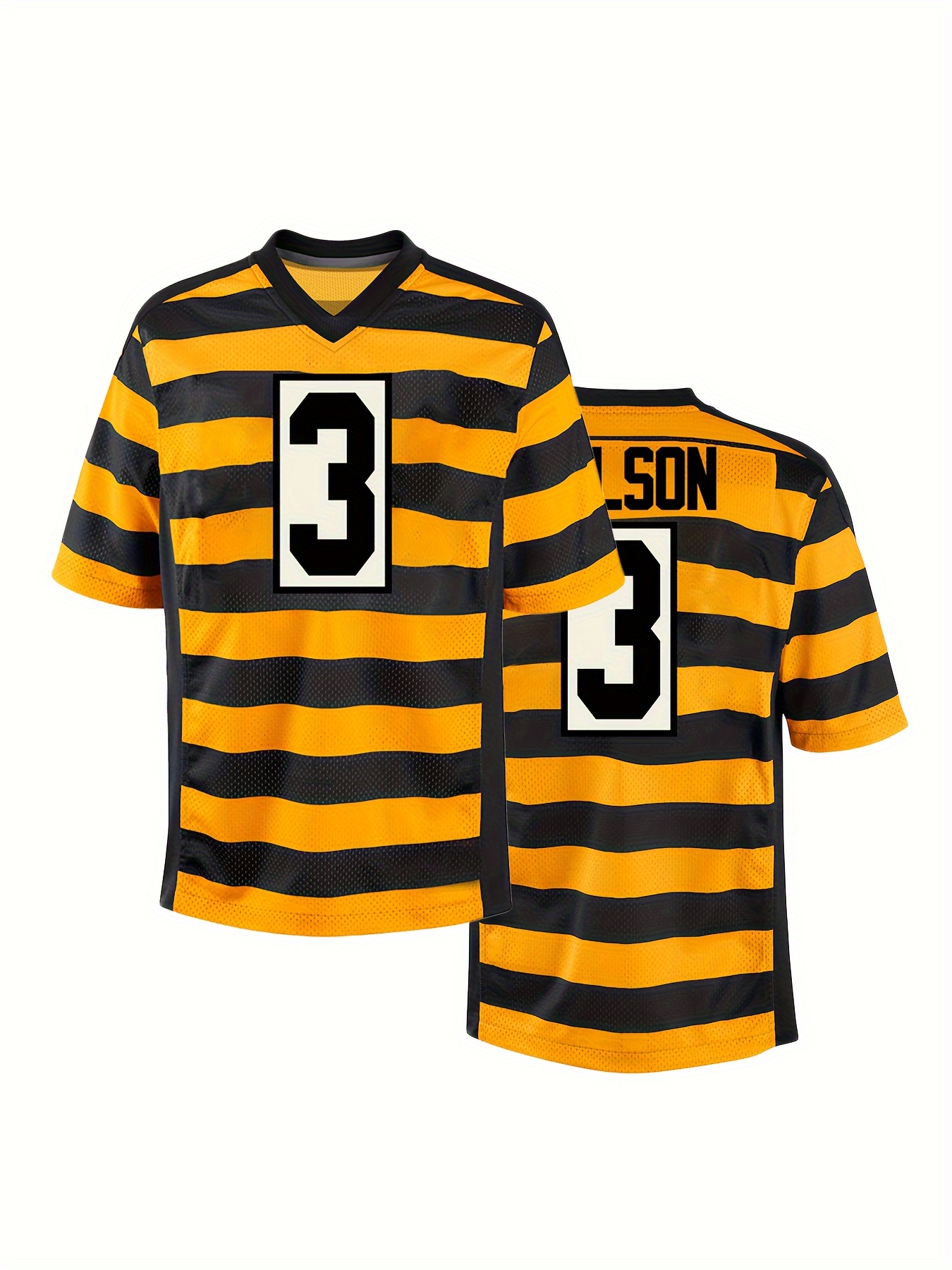 Men'S Polyester #3 Athletic Jersey - V-Neck Short Sleeve Rugby Shirt, Embroidered Striped Sportswear for Running, Training, Hiking, Outdoor Activities - Universal Fit for Adults & Teens