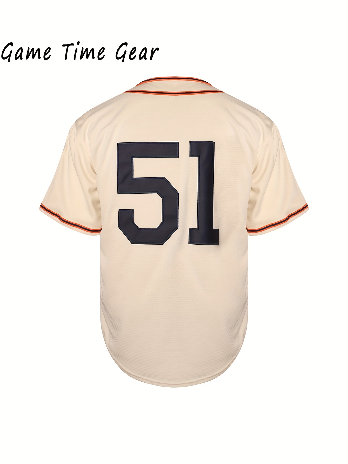 51 Baseball Jersey Sewn With High-quality Shirt, Durable And Comfortable Short Sleeved Sports Shirt, Beige S-3XL