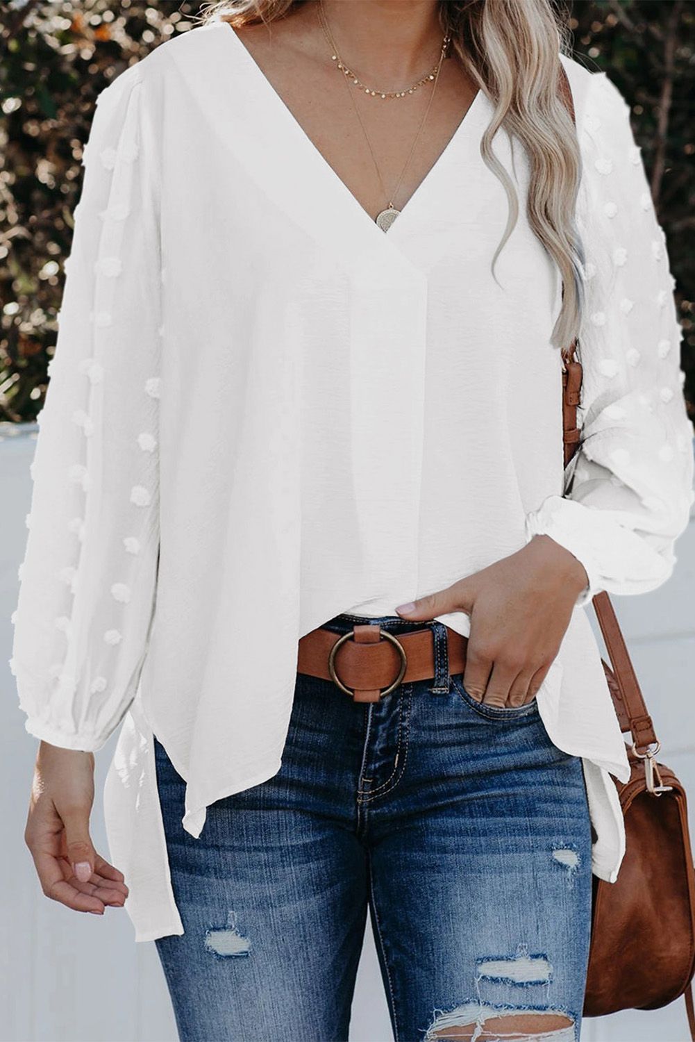 The Swiss dot in the sleeve gives you a elegant daily outfit