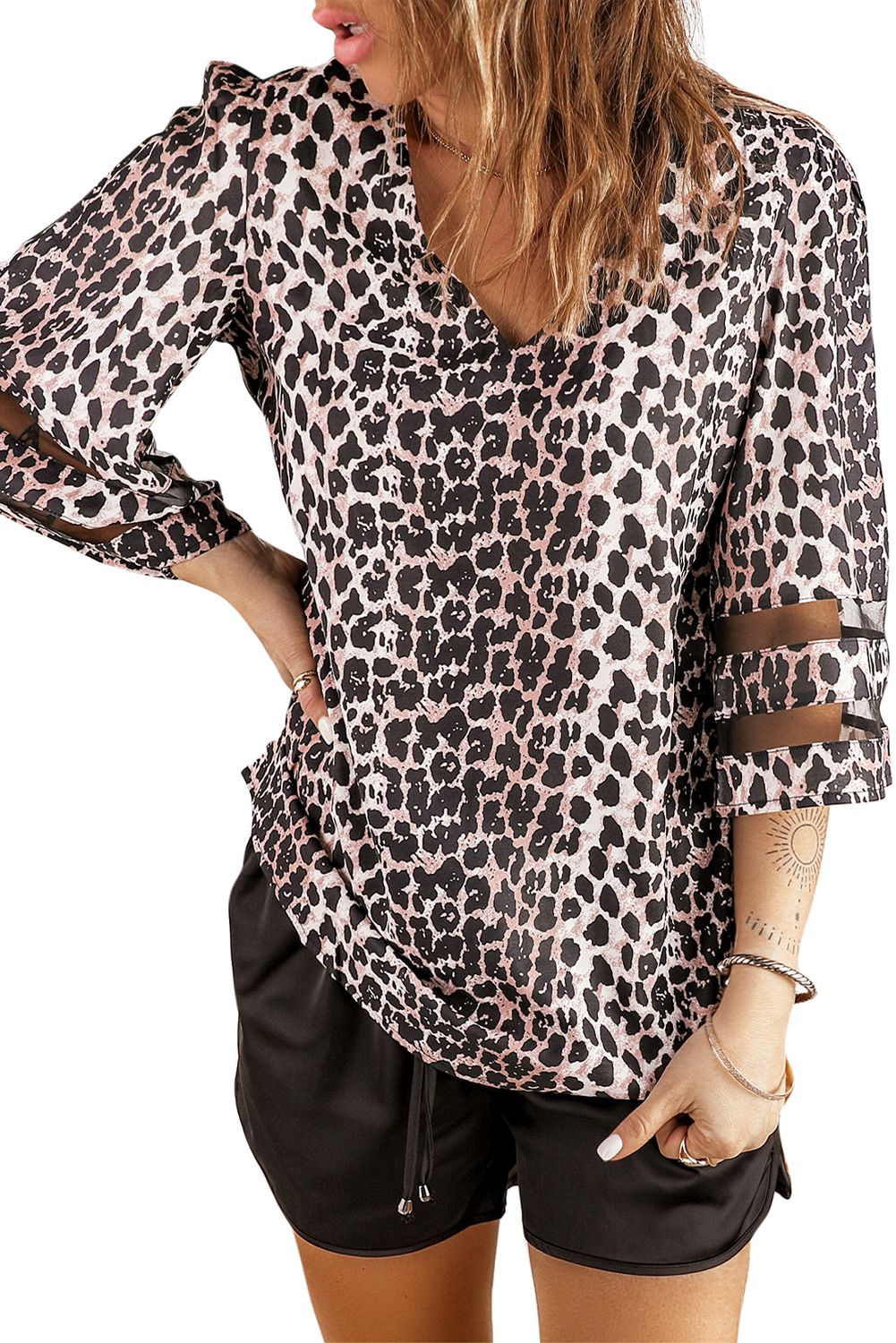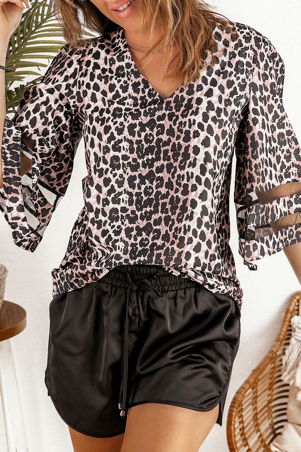 Sexy v neck, flare sleeve in 3/4 length with sheer insert