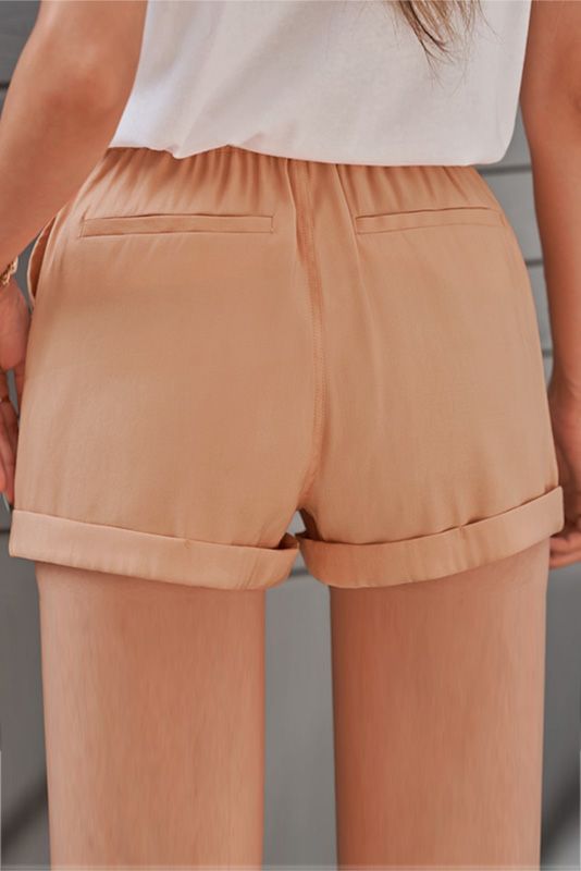 Casual short style pants, the cuffed leg opening highlights a pair of sexy long legs