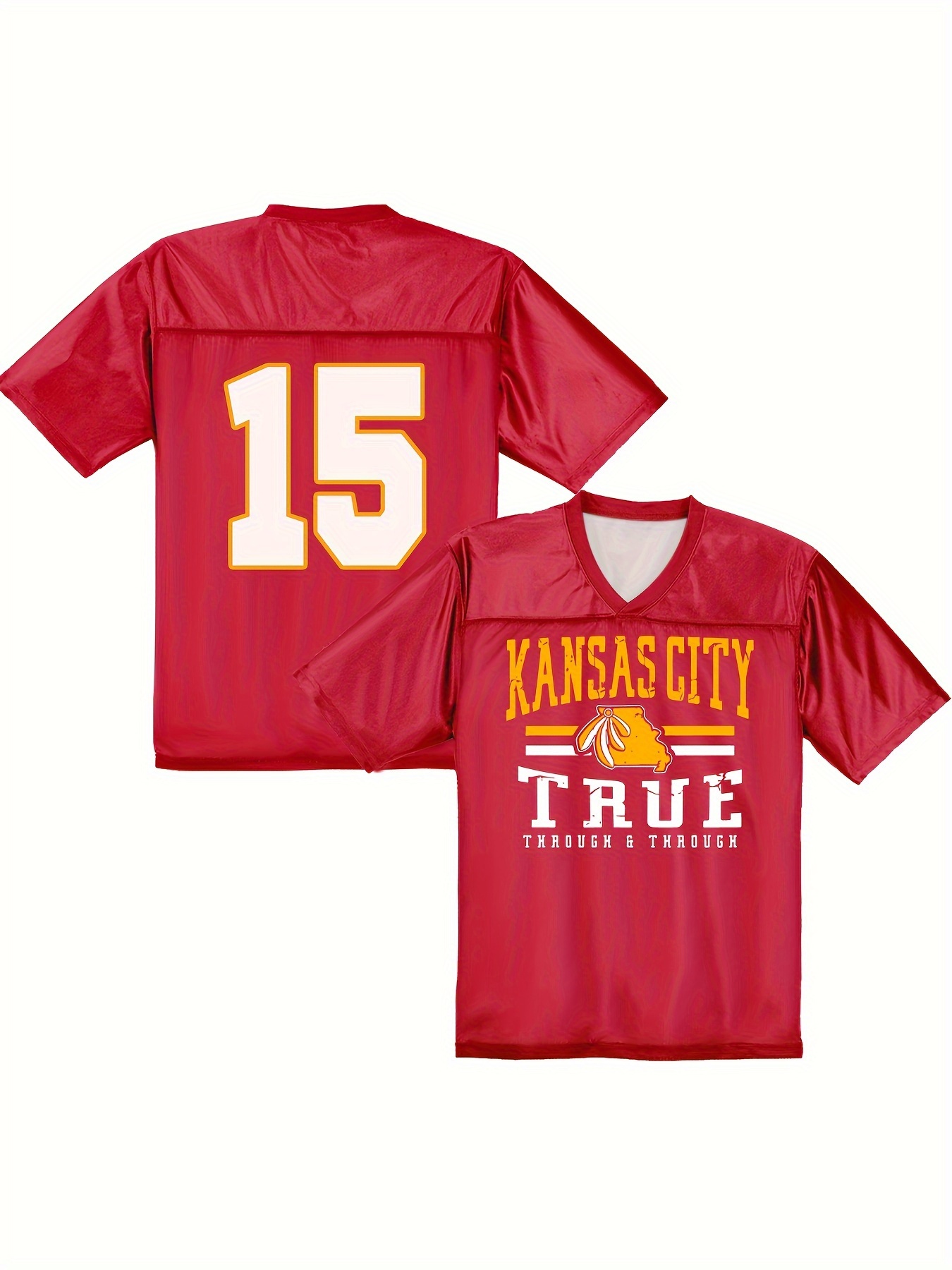 Large Size Women's Kansas City #15 Polyester Football Jersey, Women V-Neck Game Day Sports Shirt with Slight Stretch, Breathable Casual Knit Fabric for All Seasons, Loose Fit Adult &, Fans Gift Women Youth, for Casual, Party, And Training Wear
