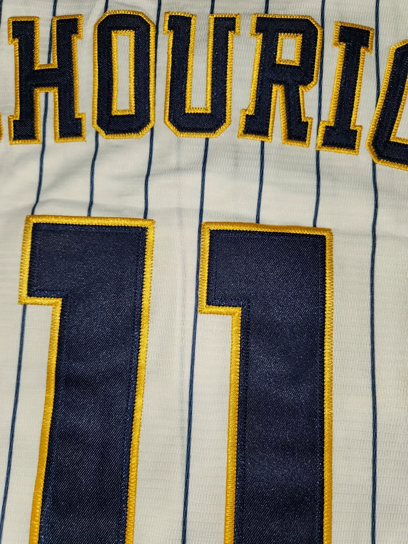 Men'S #11 Embroidered Striped Baseball Jersey - V-Neck, Button-Up, Breathable Polyester - Perfect for Sports & Outdoor Activities