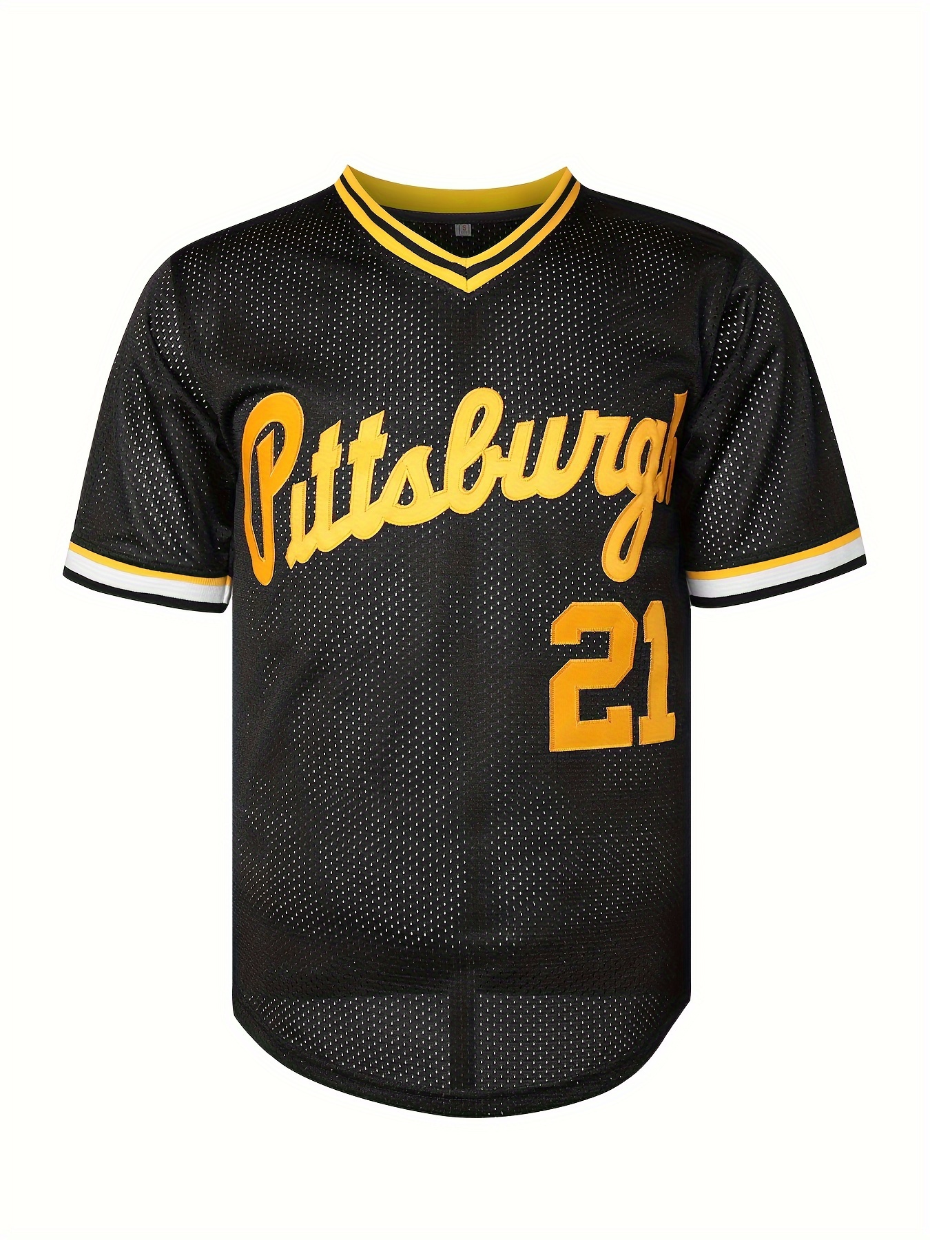 Men'S #21 Black Baseball Jersey - V-Neck, Polyester, Machine Washable - Perfect for Sports & Casual Wear