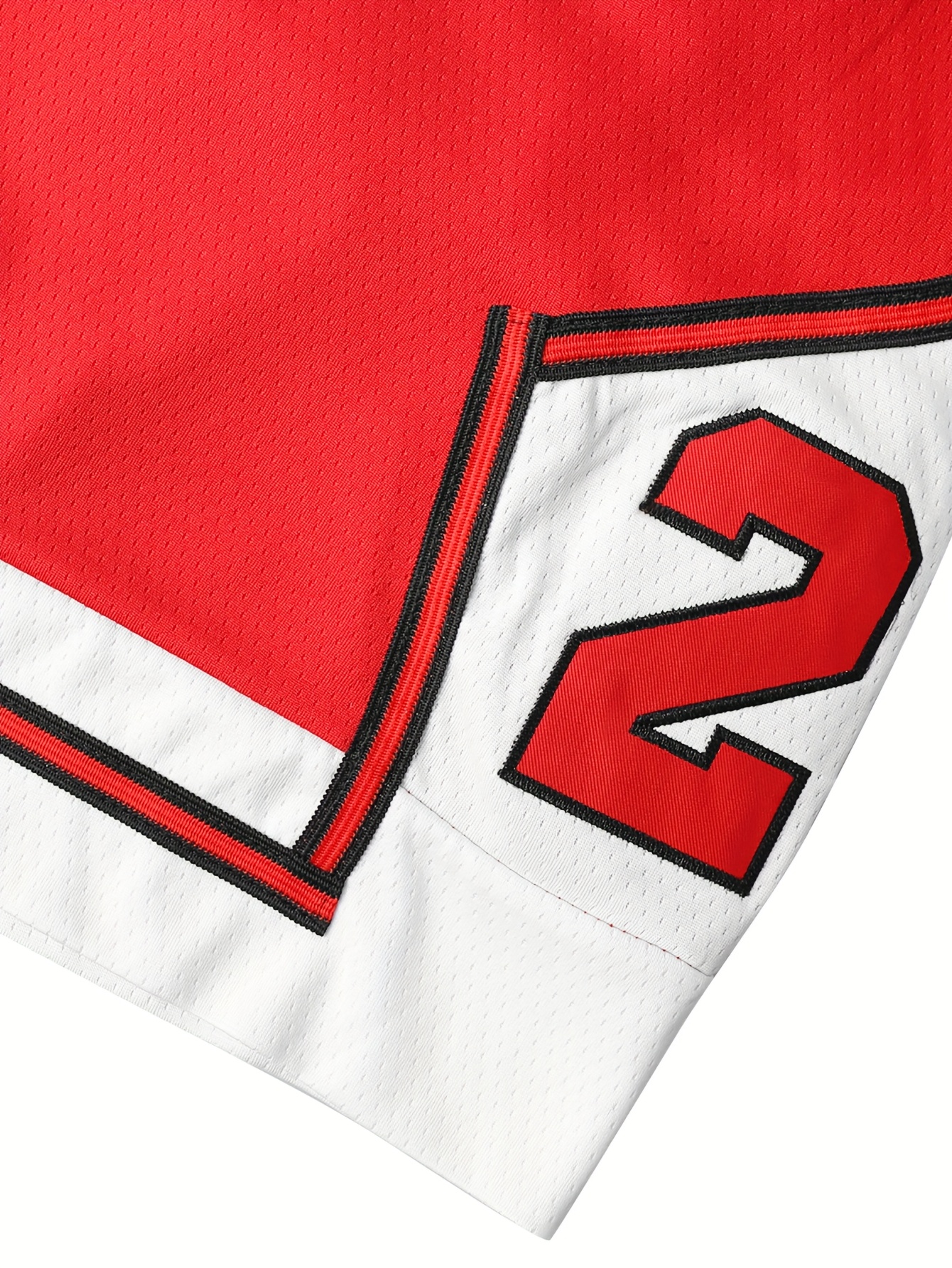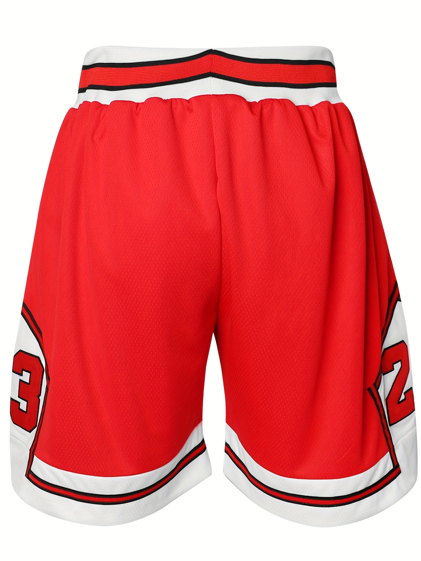 Men's #23 Embroidered Basketball Shorts - Breathable Polyester, Red & White Design, Elastic Waistband with Drawstring, Machine Washable, Perfect for Sports, Outdoor Activities & Casual Wear