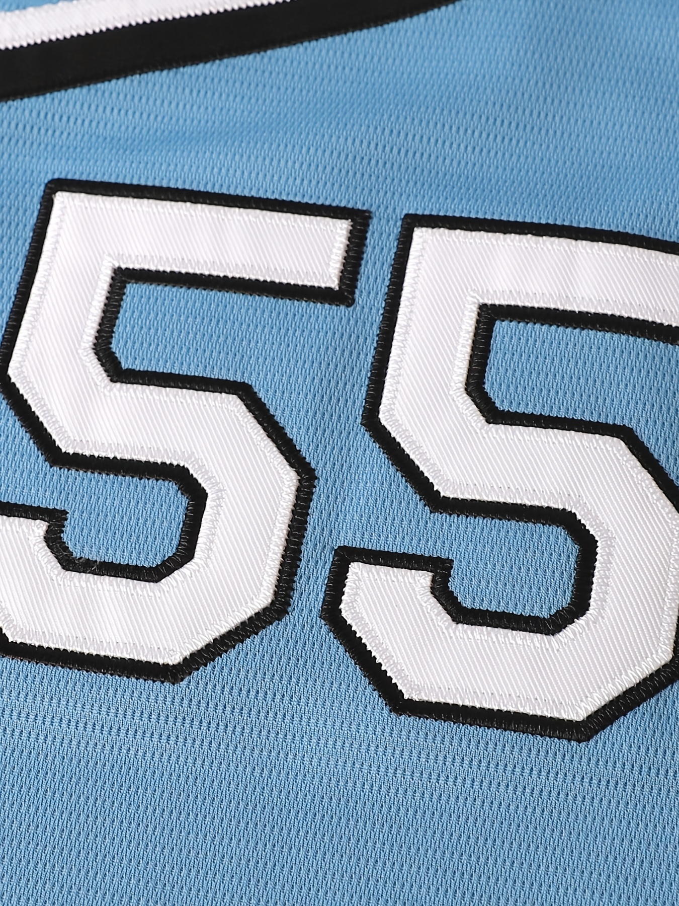 Men'S #55 Embroidered V-Neck Baseball Shirt, Polyester Knit Fabric, Loose Fit, Button Closure, Casual Sports Top for Team Sports, Fishing, Hiking, Running, Cycling - Perfect for Parties, Beach, Summer Events - Sizes S-XXXL