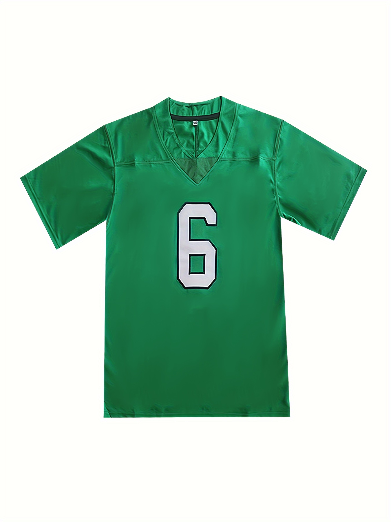 Men's #6 Green Breathable Rugby Jersey - Embroidered V-Neck Short Sleeve, Loose Fit Polyester Shirt for Training, Casual & Outdoor Wear, Machine Washable, All-Season Comfort, Sports Training Gear, Embroidered Detailing