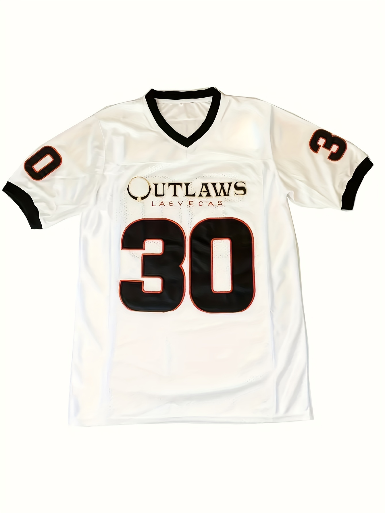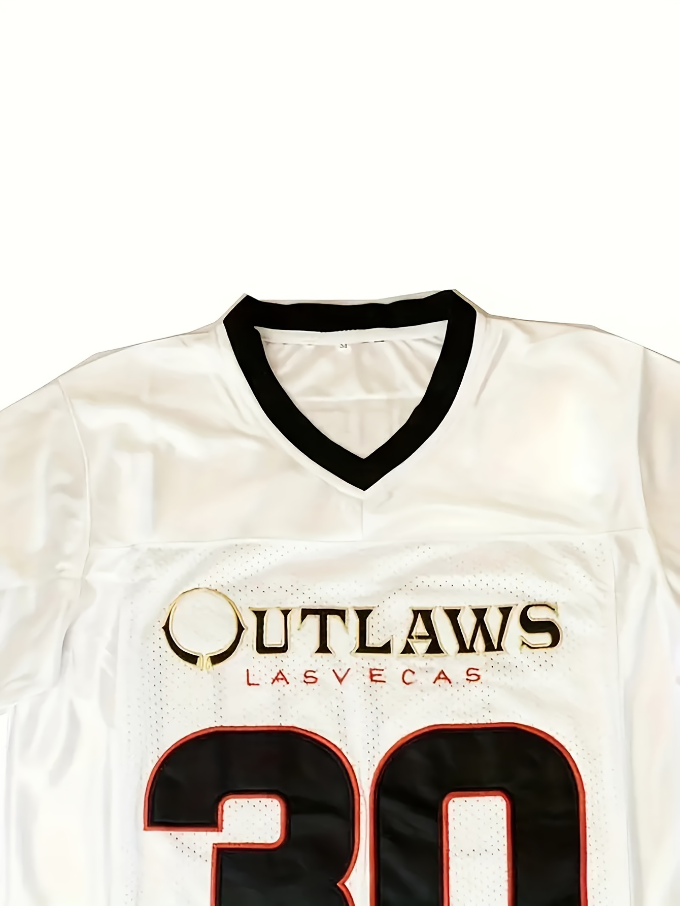 Men'S Outlaws Las Vegas 30 Jersey, White Polyester Sports Training Top, Breathable V-Neck, Casual Athletic Shirt, Sizes S-3XL, for American Football, Running, Training, Hiking, Beach, Casual Outings