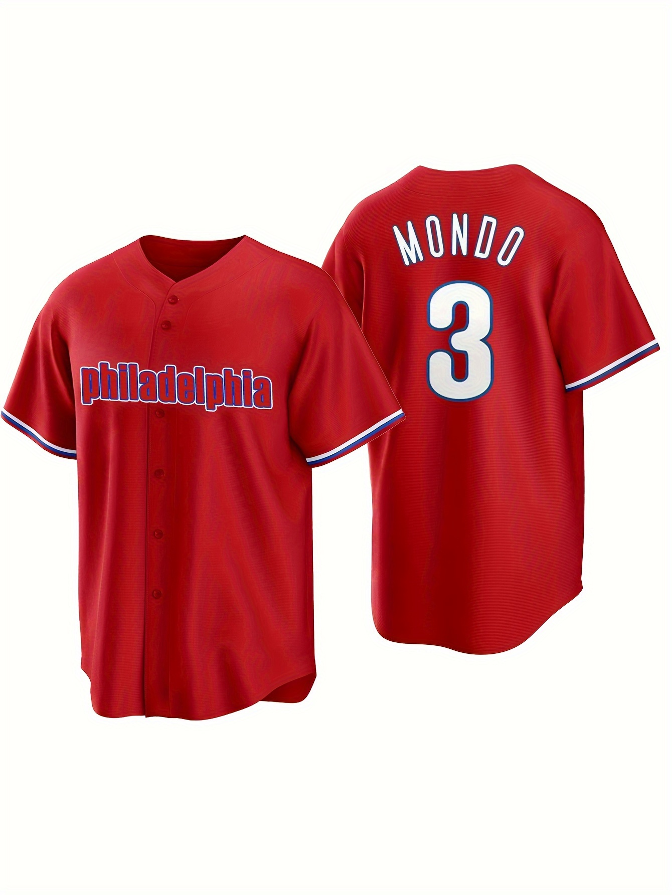Men'S Retro PHILADELPHIA #3 Embroidery Design Short Sleeve V-neck Loose Button Up Shirt, Men'S Summer Baseball Jersey