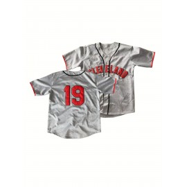 Men's Vintage #19 Embroidered Baseball Jersey - Breathable Polyester, V-Neck, Button-Up Sports Uniform for Outdoor Activities, Machine Washable, Lightweight & Comfortable for Spring, Summer & Fall, Perfect for Baseball & Sports Enthusiasts