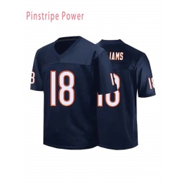 Men's #18 Purple American Football Jersey - Embroidered Lettering & Number, V-Neck Loose Fit, Polyester Retro Sportswear for Games, Training, Casual Wear | All-Season Comfort, Machine Washable, Training Apparel, Durable Sportswear, Embroidered Detailing