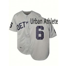 Men's Detroit 6 Embroidered Baseball Jersey - V-Neck Short Sleeve Button-Up Shirt with Bold Lettering & Number 6 Design, Loose Fit Polyester Top for Training, Casual Wear & Sports (Sizes S-3XL)