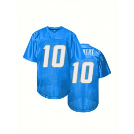 Men's Blue #10 Breathable Polyester Rugby Shirt - Embroidered V-Neck Short Sleeve Jersey, Loose Fit All-Season Training Top for American Football, Casual & Outdoor Sports (Adults & Teens)