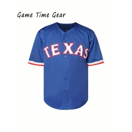 Men'S Blank Blue Embroidered Letter Baseball Jersey - V-neck Elastic Fit Suitable For Casual And Sports Wear S-3XL