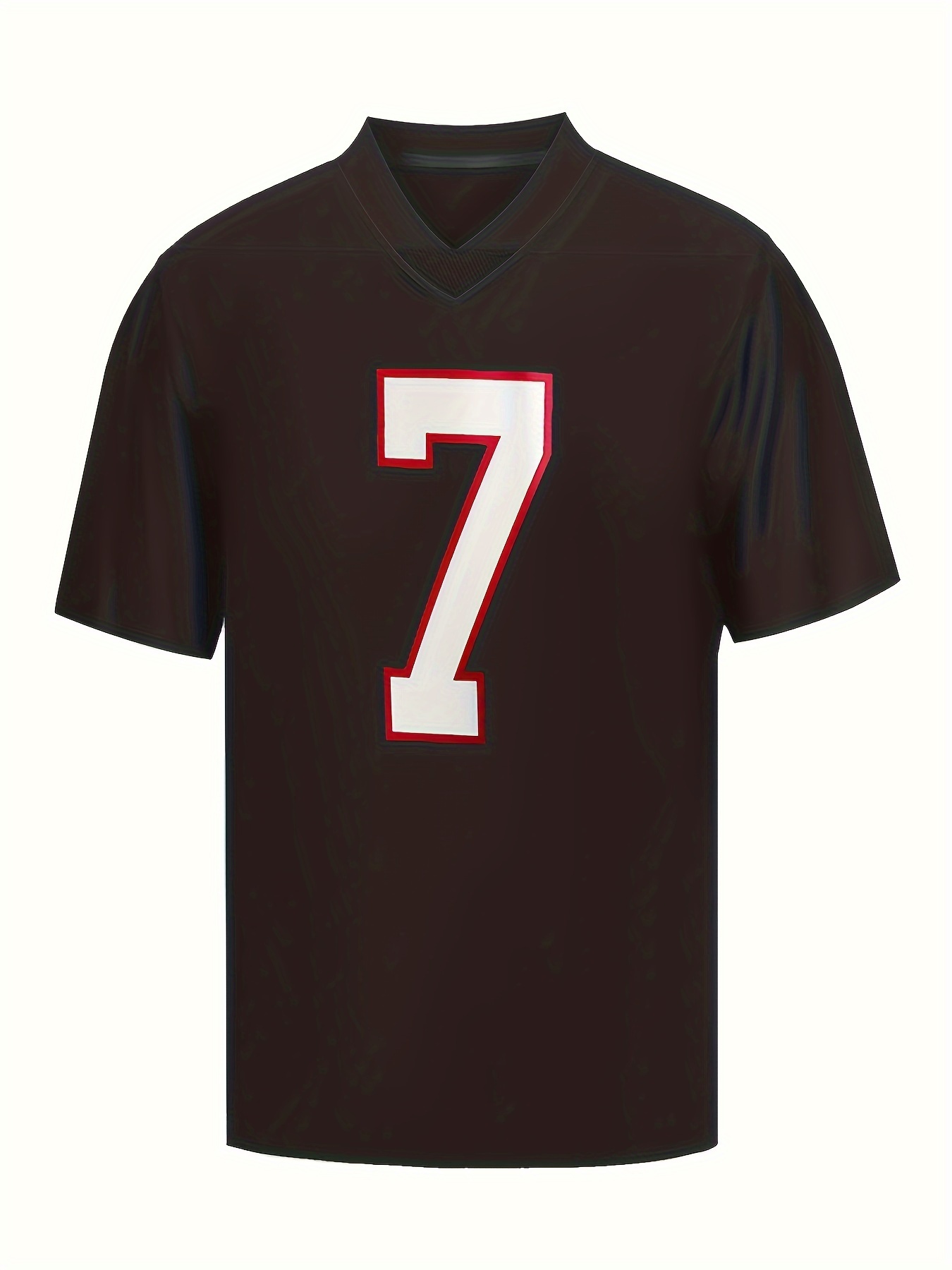 Men's Black #7 Embroidered Rugby Shirt - Breathable 100% Polyester V-Neck Jersey, Loose Fit Athletic Top for Running, Training, Hiking & Outdoor Activities - All-Season Machine Washable Sportswear for Adults & Teens