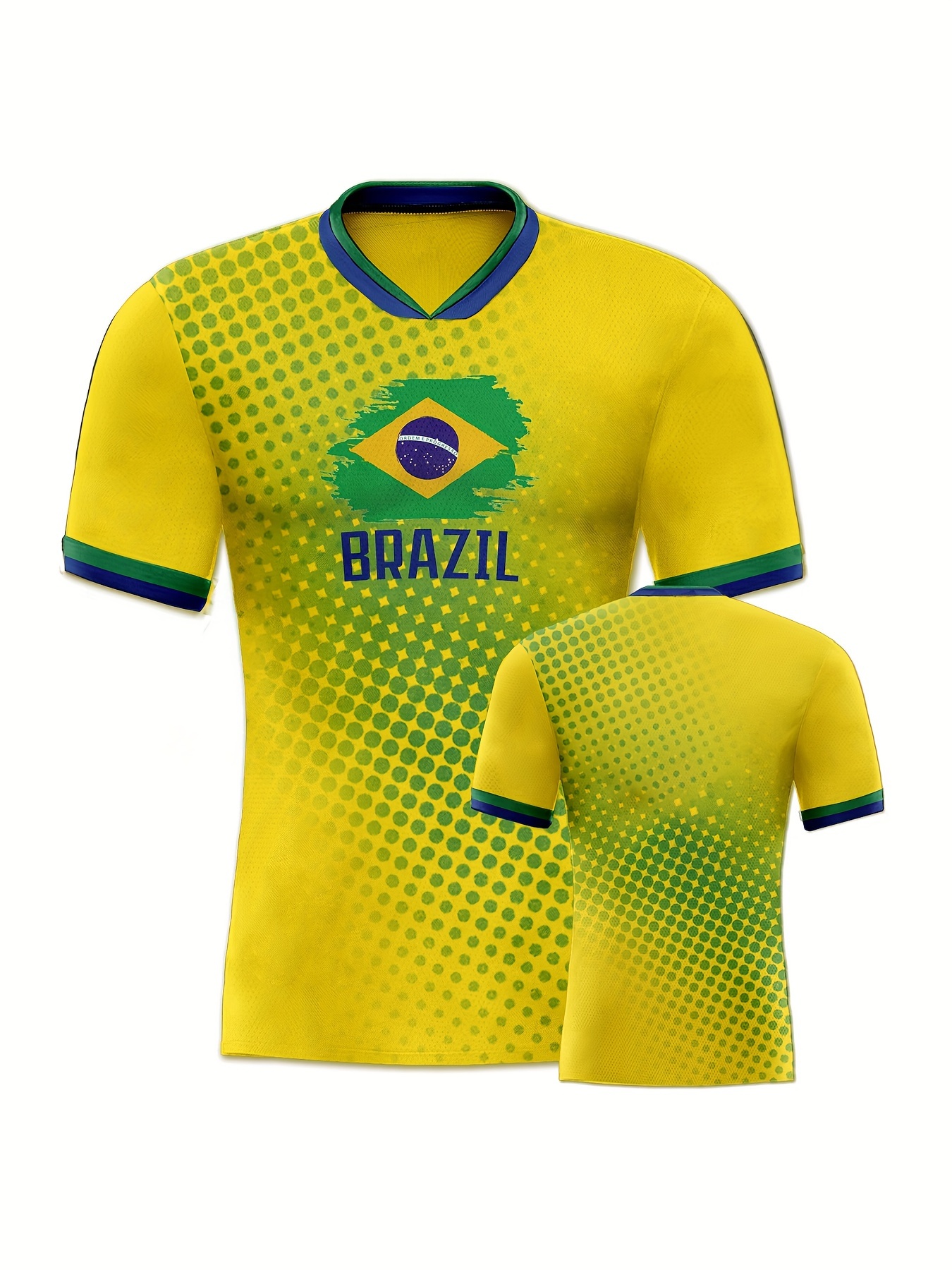 Women's Large Size Professional Sports Fabric Creative Pattern Print Brazil Home Soccer Jersey T-shirt, Soccer Jersey Flag Uniforms Shirts Breathable And Lightweight, Moisture-Wicking, As Gifts For Sports Fans