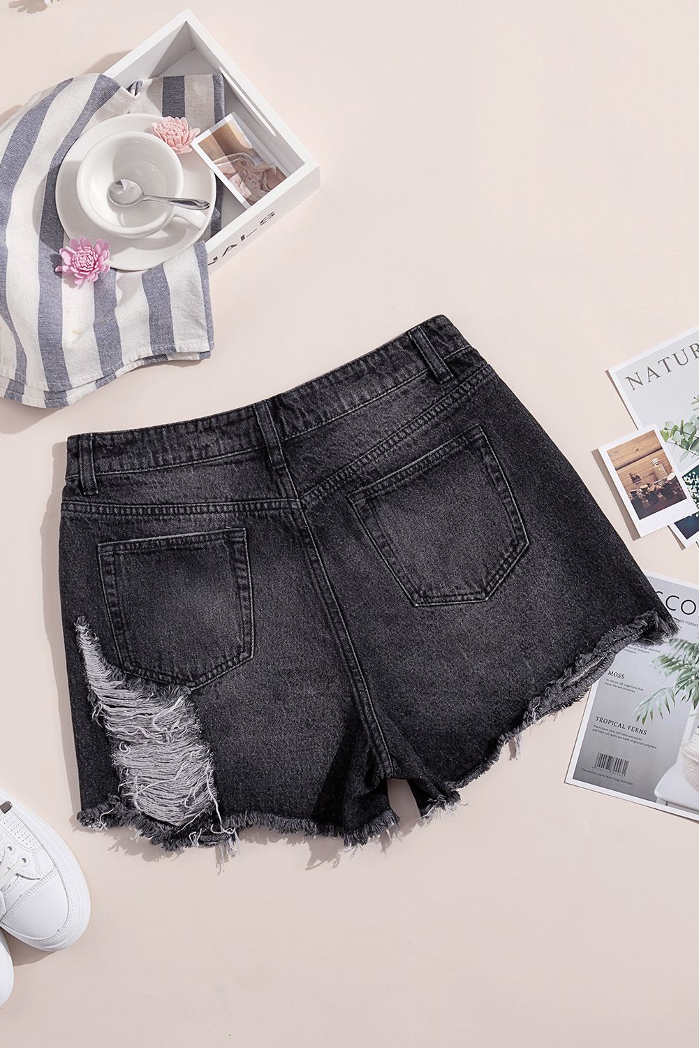 Featuring an on trend high rise fit in a vintage medium wash Their distressing and frayed hemline create the perfect laid-back finish Zip fly closure, pockets front and back Great and fashionable to pair with any top Womens denim shorts wholesale is all-match for a chic look