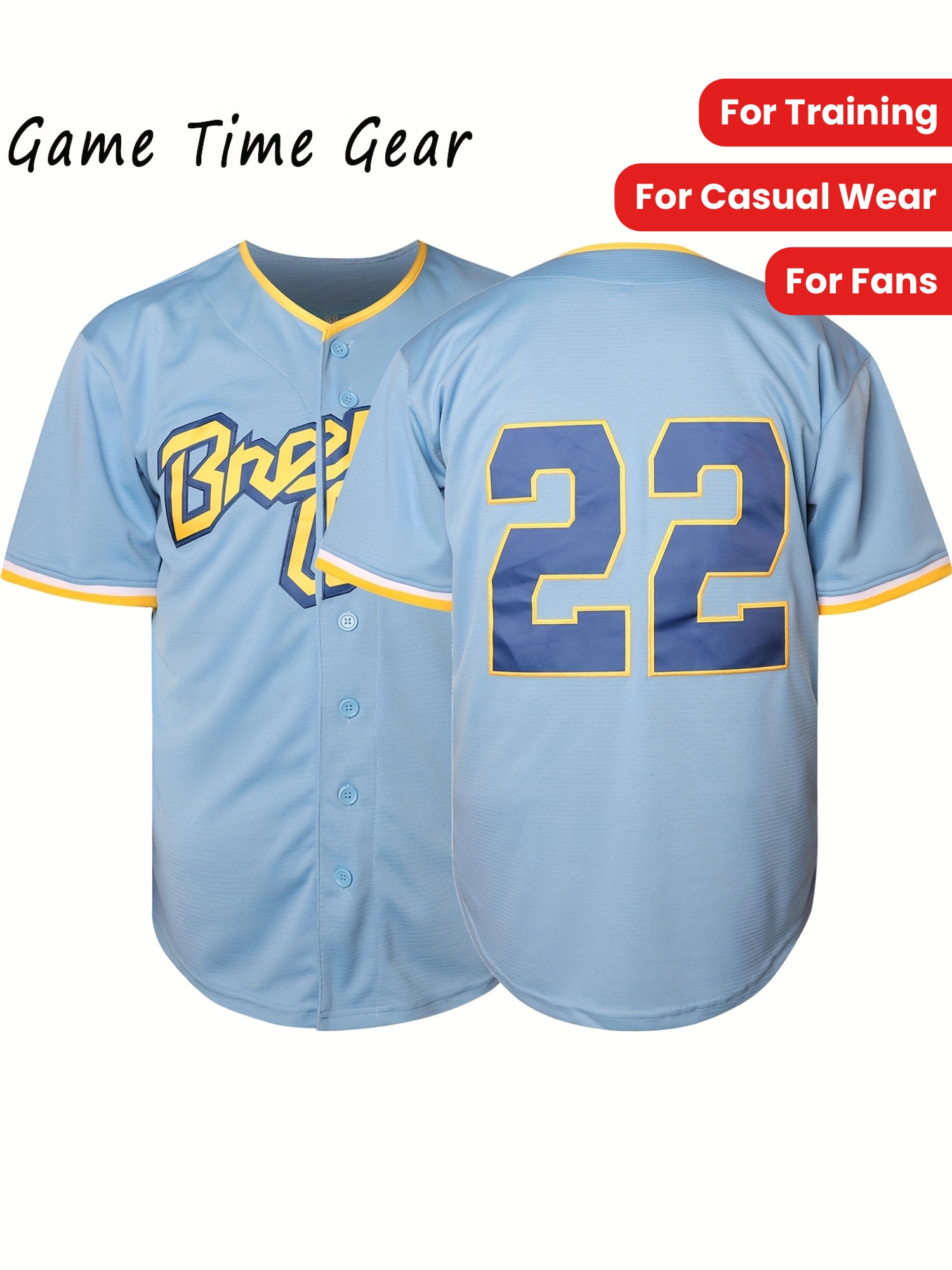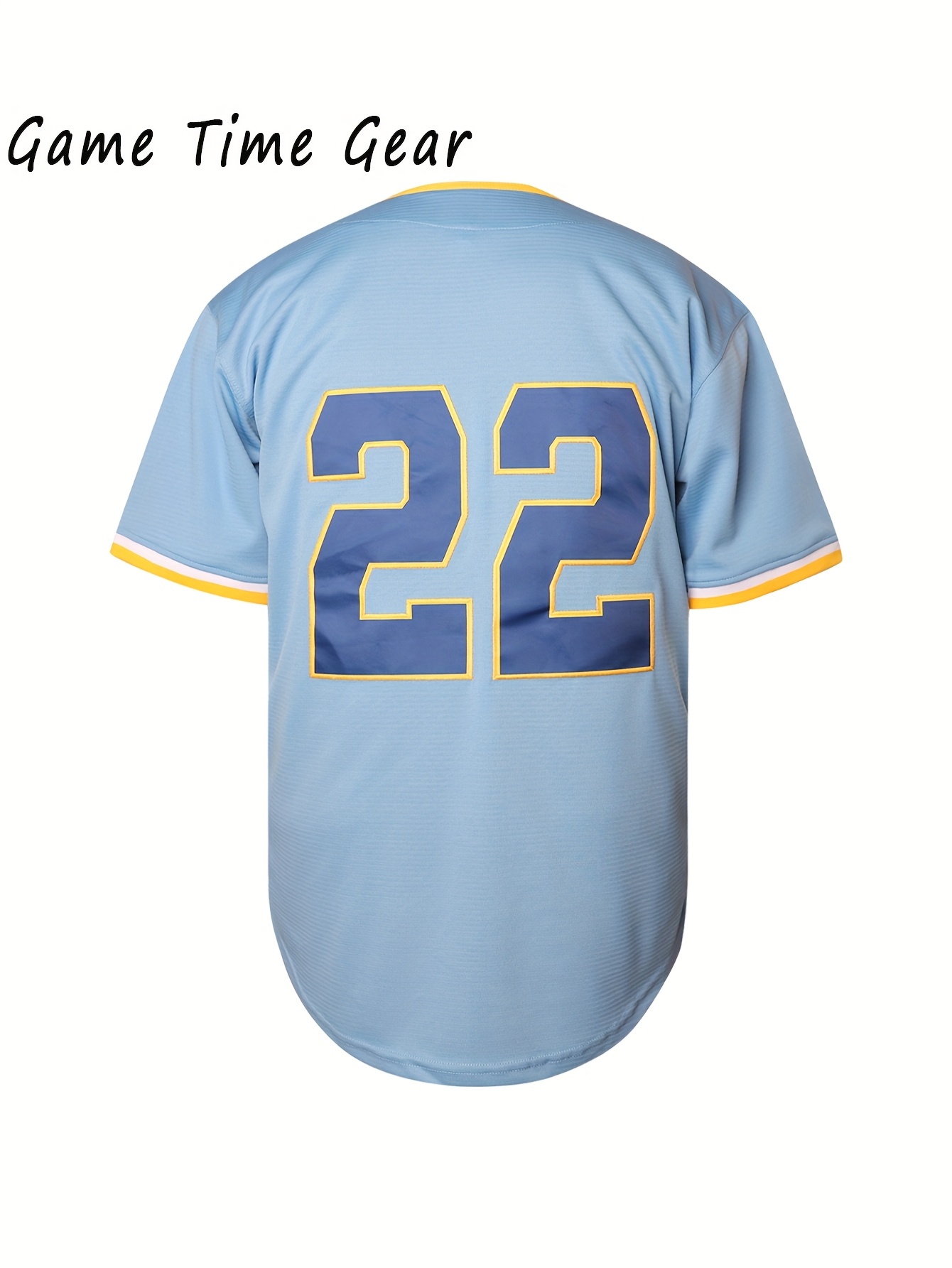 Men's #22 Embroidered Baseball Jersey - Light Blue V-Neck, Breathable & Durable for Training, Casual Wear, and Fans, Perfect for Game Day or Everyday Use, Outdoor Activewear | Striped Sports Jersey | Embroidered Detailing
