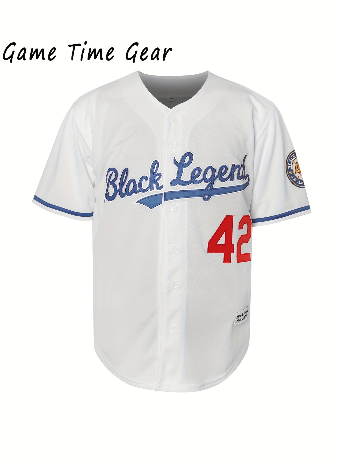 Men'S # 42 Embroidered Polyester Sweatshirt Loose V-neck Button With Slight Elasticity Knitted Fabric Men'S Color Block Design Size S-3XL