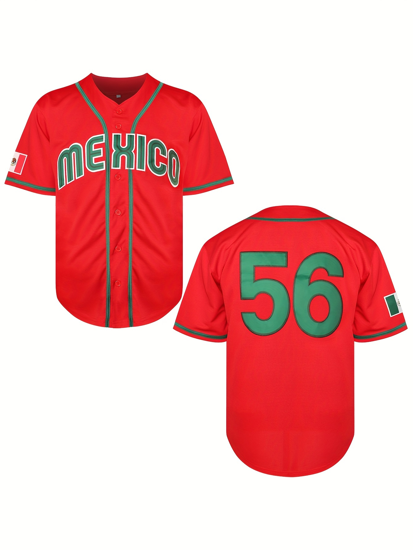 Men'S MEXICO #56 Baseball Jersey, Classic Retro Letter Embroidery Design Breathable Short Sleeve Shirt For Training Competition