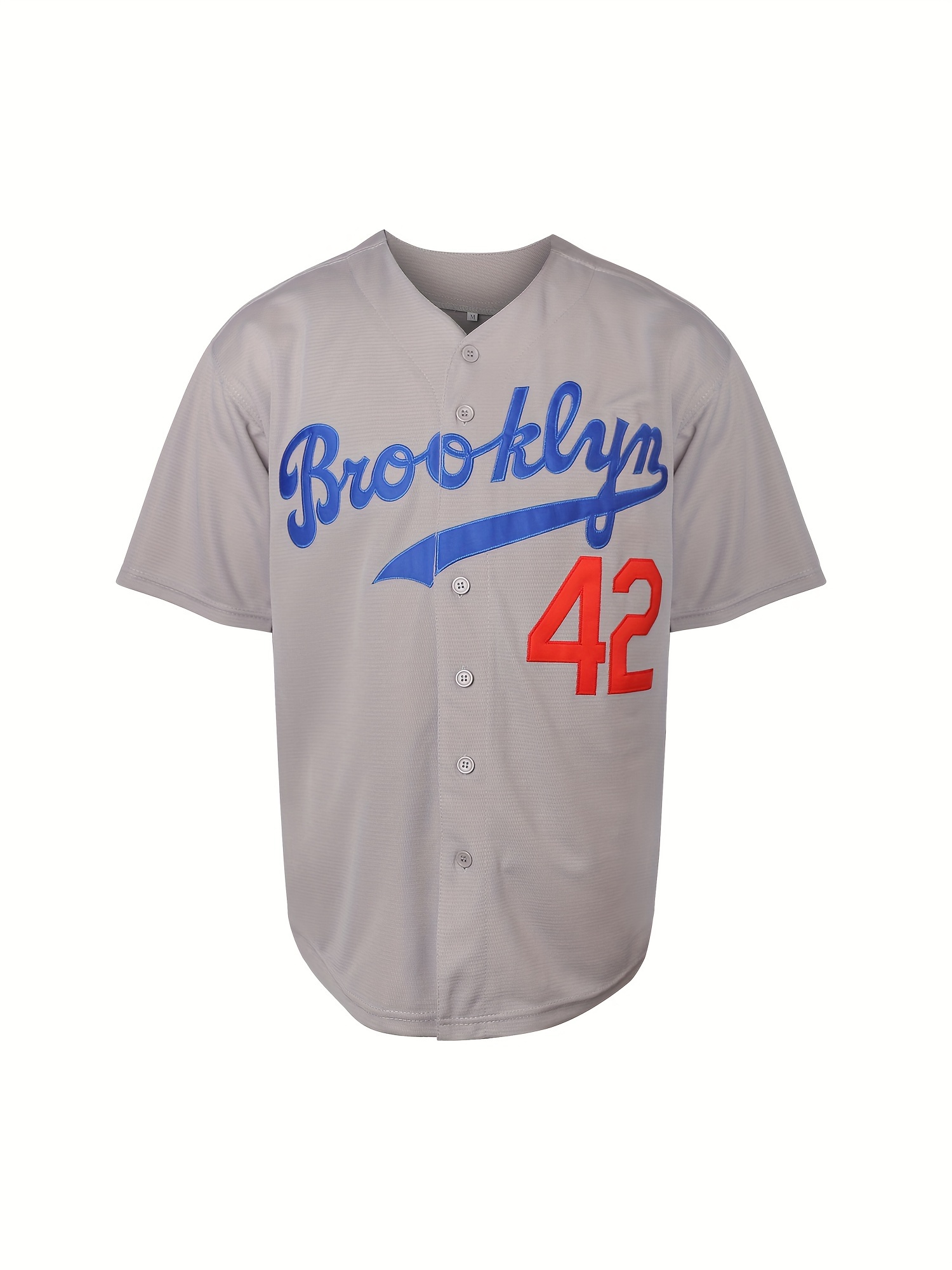 Men'S Retro Letter #42 Embroidery Design Short Sleeve V-neck Loose Button Up Shirt, Men'S Summer Baseball Jersey