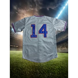 Men's #14 Gray Baseball Jersey - V-Neck, Button-Up Design with Details, Perfect for Games, Training, Holidays & Casual Wear - Sizes S to XXXL, Team Apparel | Casual Baseball Jersey | Versatile Jersey