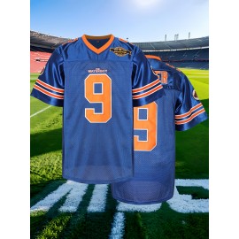 Men'S # 9 Blue Rugby Sweatshirt Breathable V-neck Embroidered Polyester Knitted Micro Elastic Loose Fabric