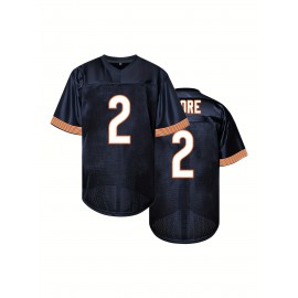Men's Deep Blue #2 Breathable Rugby Jersey - V-Neck Short Sleeve Embroidered American Football Shirt, Loose Fit All-Season Training & Casual Wear, Machine Washable Sportswear for Men & Teens, Comfortable Athletic Wear