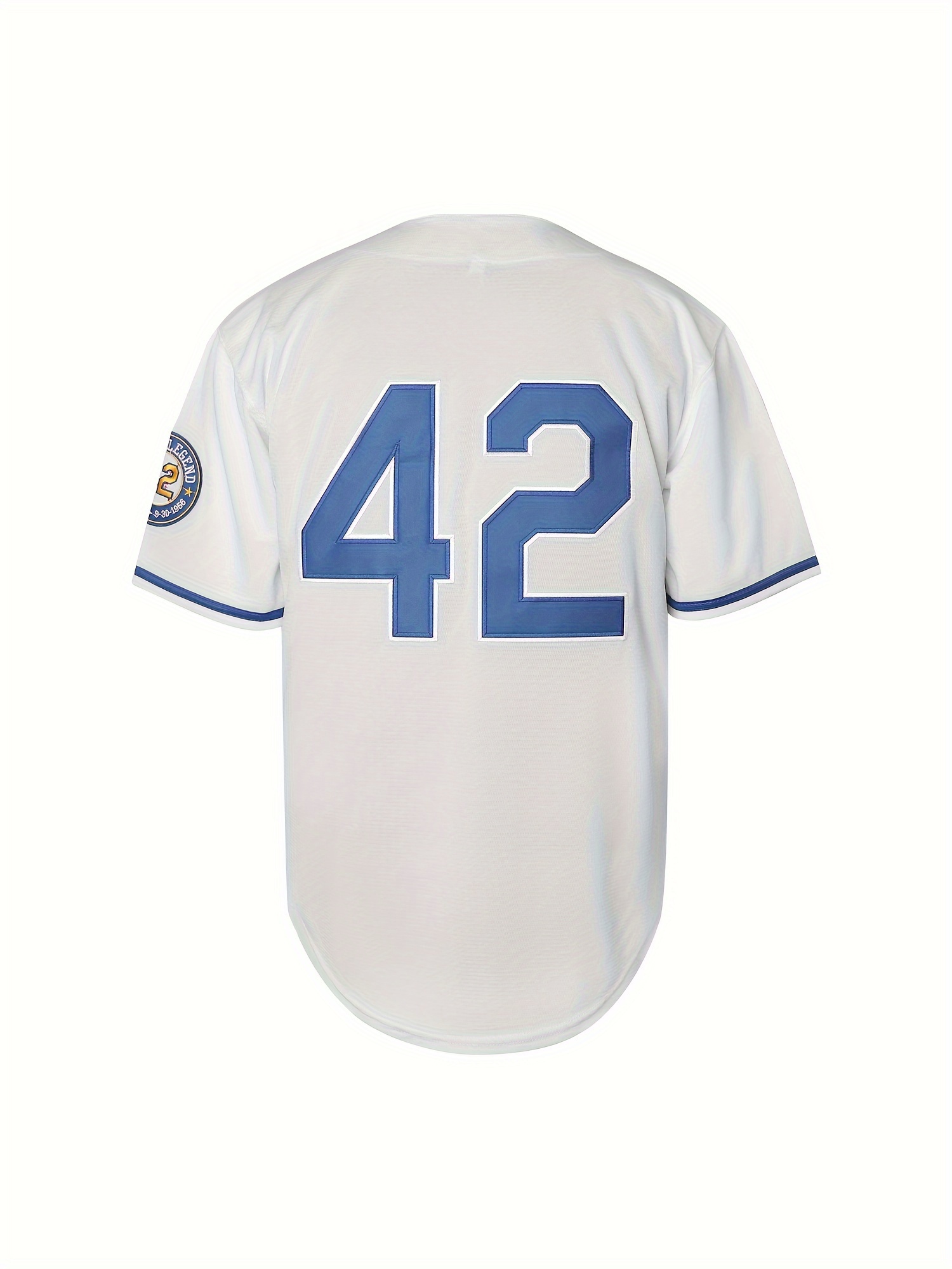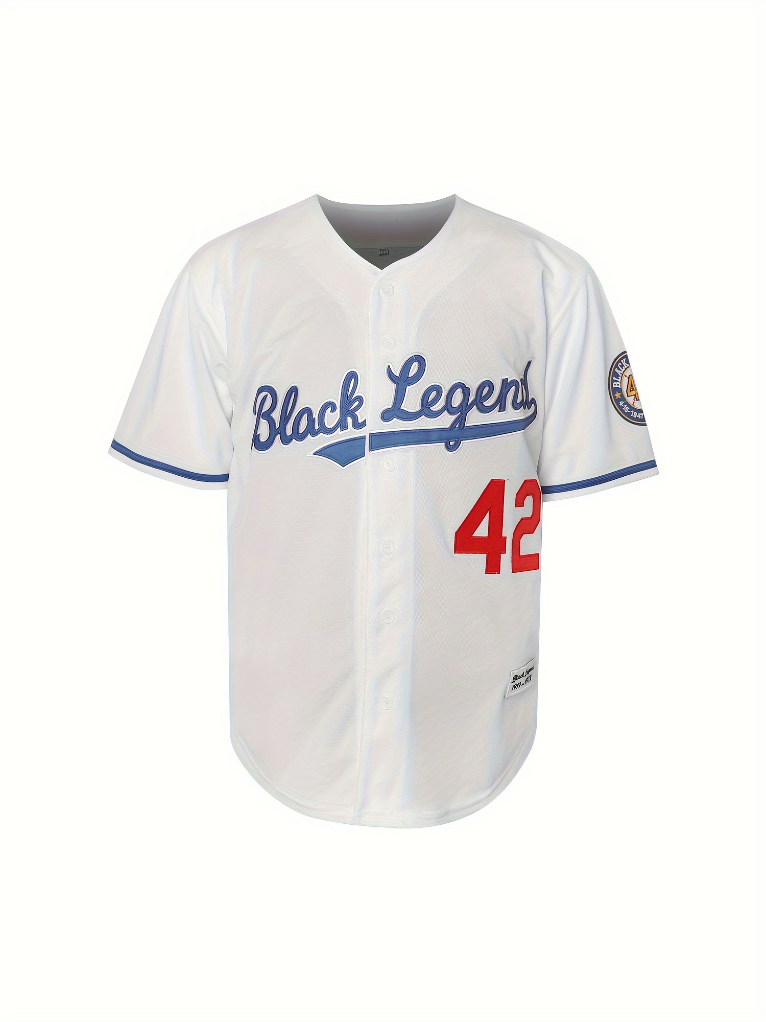 Men'S Black Legend 42 Embroidery Design Short Sleeve V-neck Loose Button Up Shirt, Men'S Retro Summer Baseball Jersey