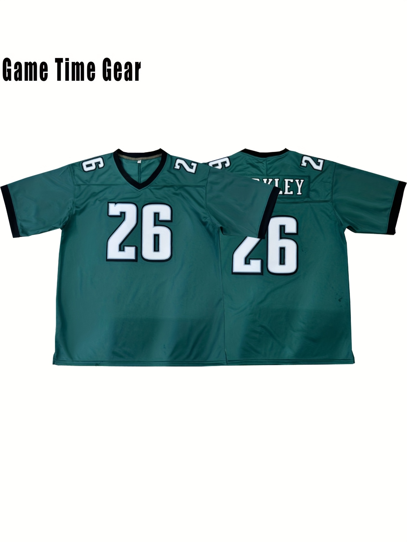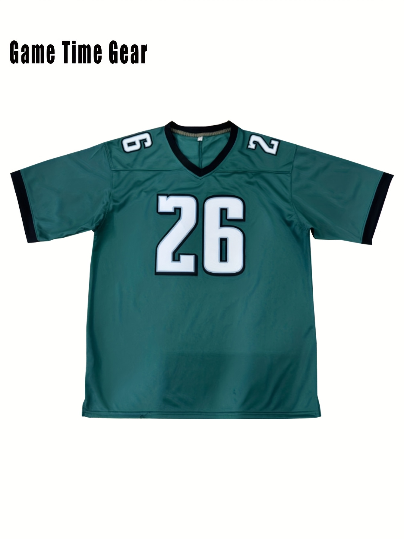 Men's Green #26 Embroidered Football Jersey - Breathable Knit V-Neck Shirt with Slight Elasticity, Loose Fit for Team Sports, Outdoor Hiking & Casual Wear | Machine Washable, Spring/Summer/Fall, Sporty Design, Elastic Breathability, Best for Christmas